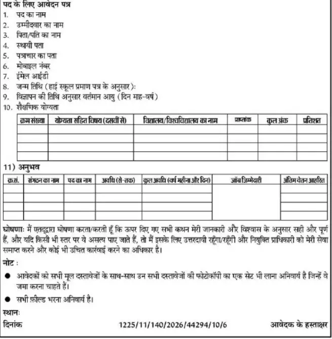 - Step 2: आवेदन पत्र का प्रारूप (Form) डाउनलोड करें (लिंक नीचे 'Important Links' सेक्शन में उपलब्ध है)।