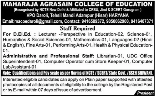 Maharaja Agrasain College Hisar Recruitment 2026 Overview
