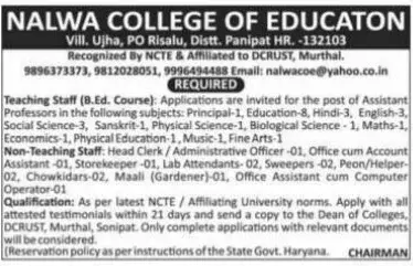 🚀 Nalwa College Panipat Vacancy 2026: How to Apply